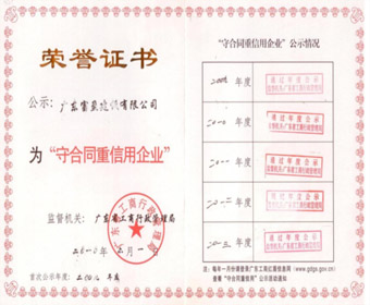 連續(xù)七年被廣東省工商局評為守合同重信用企業(yè)