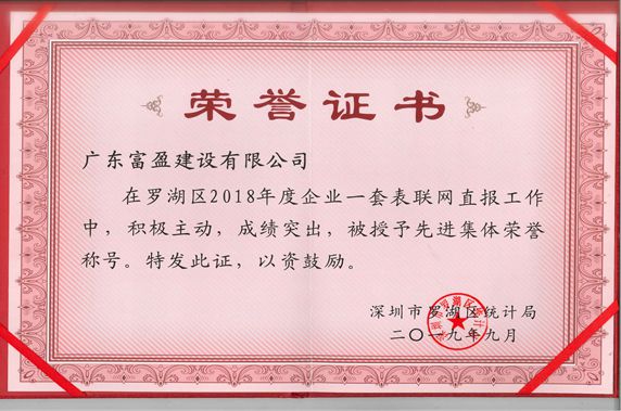 深圳羅湖區(qū)統(tǒng)計局頒發(fā)(2018年度企業(yè)一套表聯(lián)網(wǎng)直報)